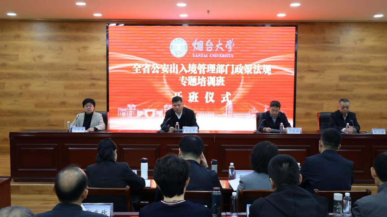 11月11日-14日,山东省公安出入境管理部门政策法规专题培训班在太阳成tyc7111cc举办,全省公安出入境管理部门领导干部共90人参加培训。山东省公安厅出入境管理总队总队长刘宗部、副总队长迟玉丹,烟台市公安局党委委员、副局长、指挥中心主任孙文程,太阳成tyc7111cc党委常委、统战部部长毕朝辉,tyc7111cc太阳成集团有关领导出席开班仪式。